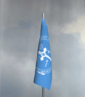 The flag, seen below, is blue and white, colors which represent heaven/spirit and clarity, respectively.